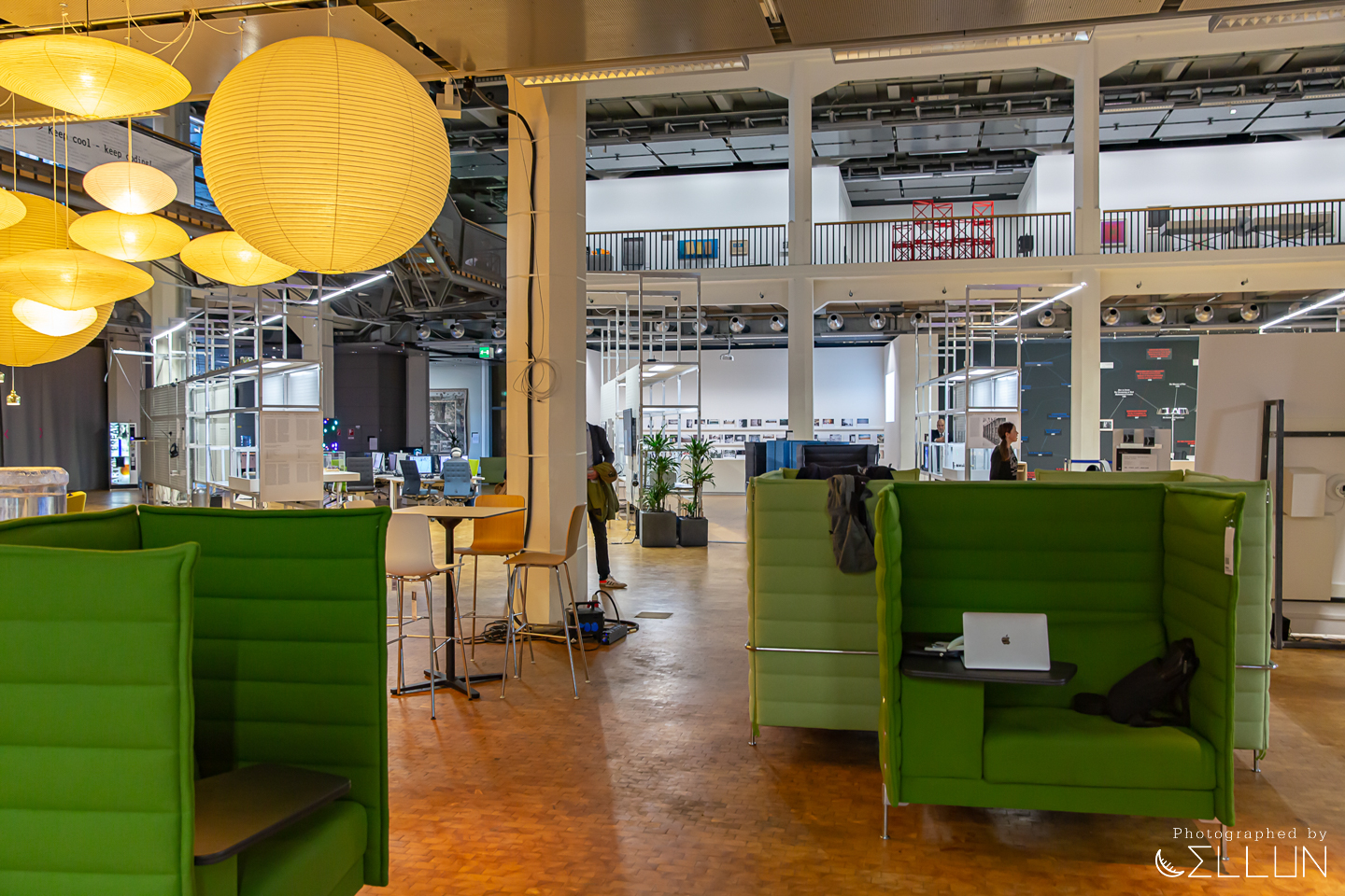 전시관 내부는 전시공간 사이사이에 책상과 의자들이 배치되어 있어서 정숙한 일반적인 미술관, 갤러리라기 보다는 좀 여유있게 만든 공유 오피스 공간같다는 느낌이 들었습다. 실제로 사무실에서 업무보듯 일을 보거나, 소파에 앉아서 편히 쉬는 사람들 등 상당히 자유로운 분위기가 신선하게 느껴져서 좋았습니다.