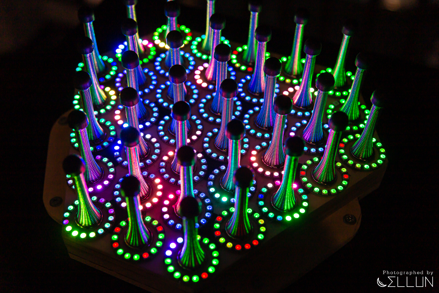 프로그램 코드의 구조를 LED와 알루미늄 판으로 시각적으로 보여주는 작품.