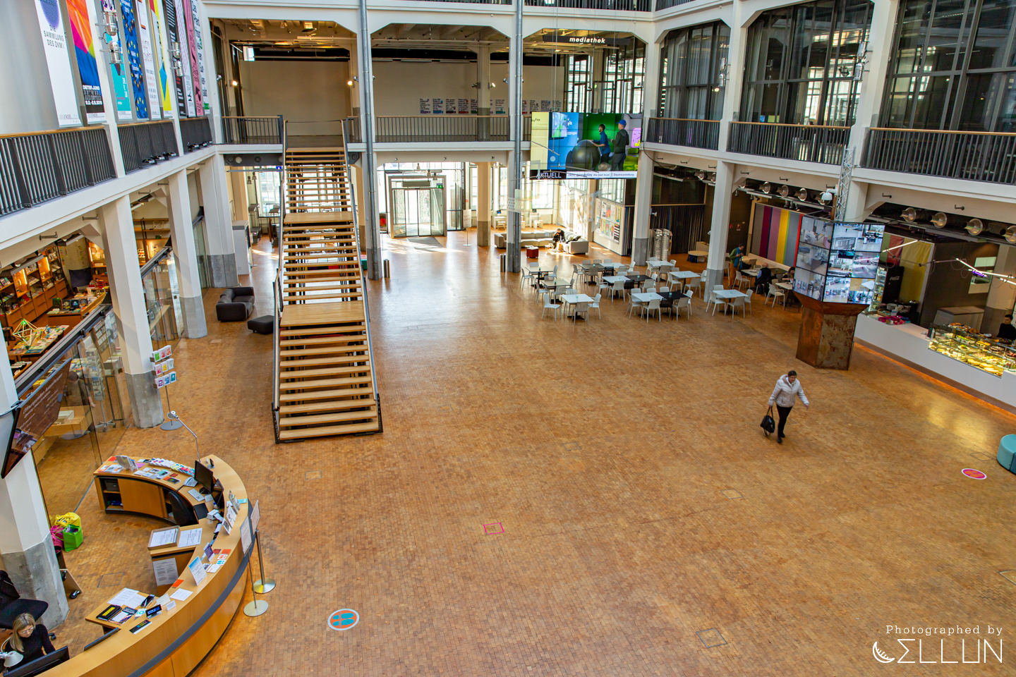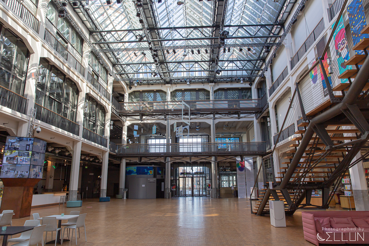 다소 평범한 생김새인 건물 외부와는 다르게 내부는 콘크리트와 철제 프레임, 유리로 구성된 인더스트리얼한 인테리어가 눈에 띕니다. 중앙로비에는 카페와 기념품 매장 및 작은 서점이 있고요. 로비의 왼편과 오른편이 전시관입니다.