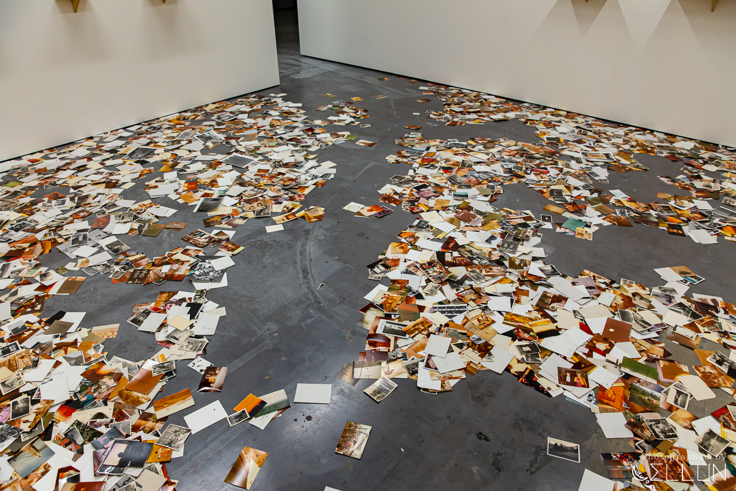 낙엽처럼 바닥에 흩어져 있는 사진들.