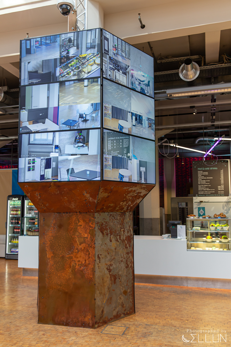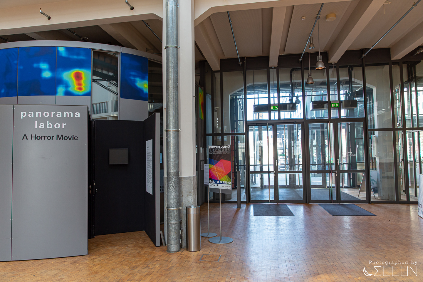 건물 여기저기를 비추고 있는 감시카메라 영상이 떡하니 전시물로 차지하고 있습니다. 방범시설마저 작품으로 활용하는 비범함이 느껴지네요. 그리고 입구 바로 옆에는 작은 파노라마 영상관이 있는데, 아래에 'A Horror Movie'라고 적혀있어서 궁금해서 한번 들어가보았습니다.
