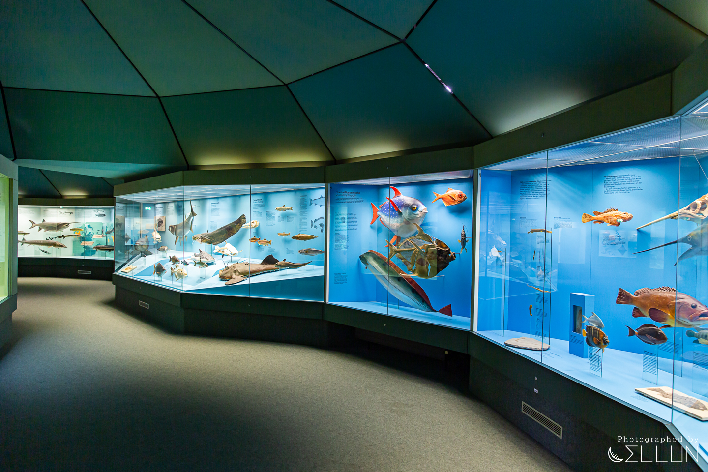 바다에 빠진 듯 어둡고 푸른 조명이 감싸는 분위기에 있는 어류관에서는 다양한 물고기들을 감상할 수 있습니다.