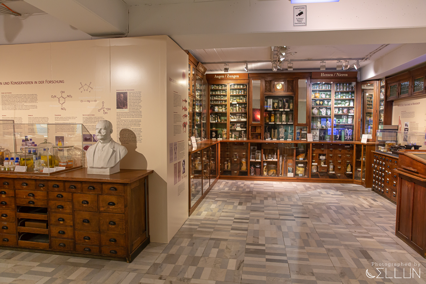 동물들의 장기 등을 병에 담아 보존해놓은 해부학 전시실입니다.