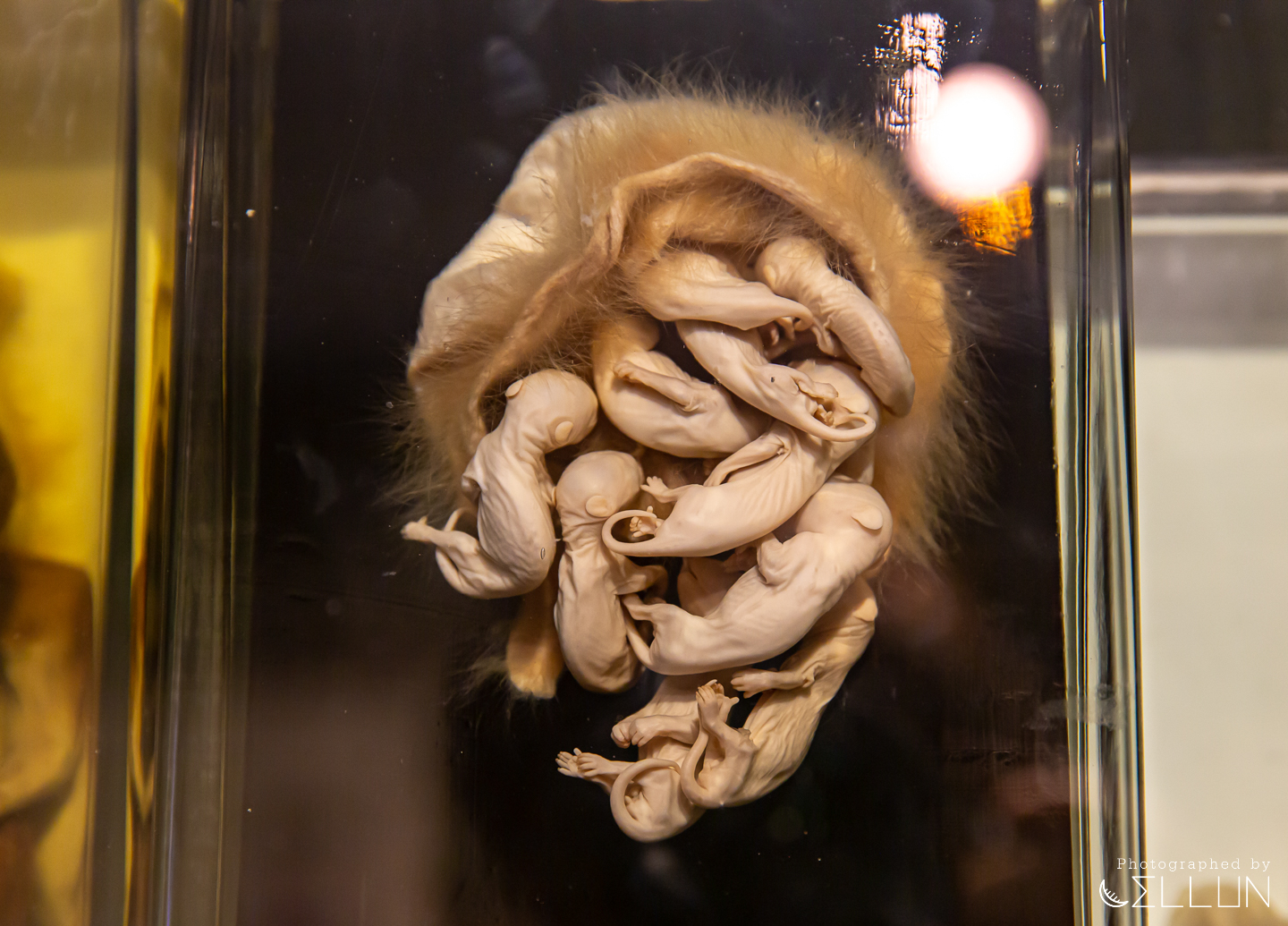 여러 새끼를 배고 있는 어미에게서 채취한 것으로 보이는 표본은 무슨 동물인지는 모르겠으나 여러 마리가 뭉쳐있어서 상당히 섬뜩하네요. 그리고 오른쪽은 원숭이인 듯 한데, 사람과 비슷한 형태라 상당히 리얼한 느낌입니다.