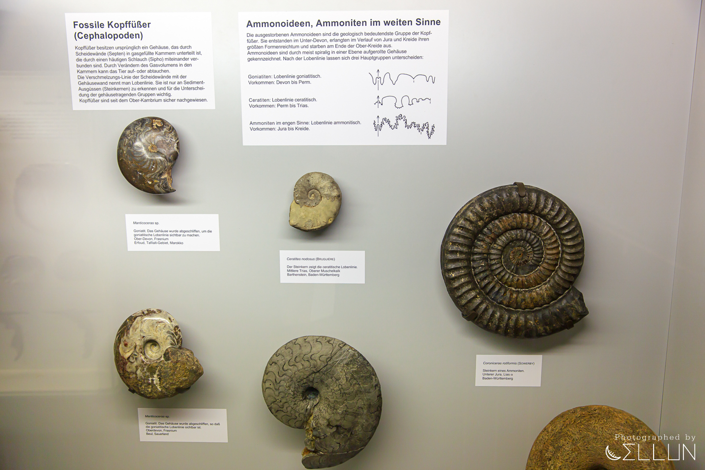 고생대, 중생대의 유명했던 암모나이트 등 갑각류 생물과 수룡 등을 볼 수 있습니다.