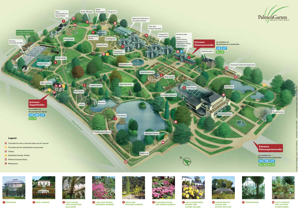 - 가는 방법 : 지하철 4호선(U4)의 종점인 'Bockenheimer Warte' 역에서 하차 후 Bockenheimer Landstraße 도로를 따라 동쪽으로 200m 정도 이동 후 북쪽으로 Palmergartenstraße를 따라 올라가면 남쪽 게이트가 나옵니다.