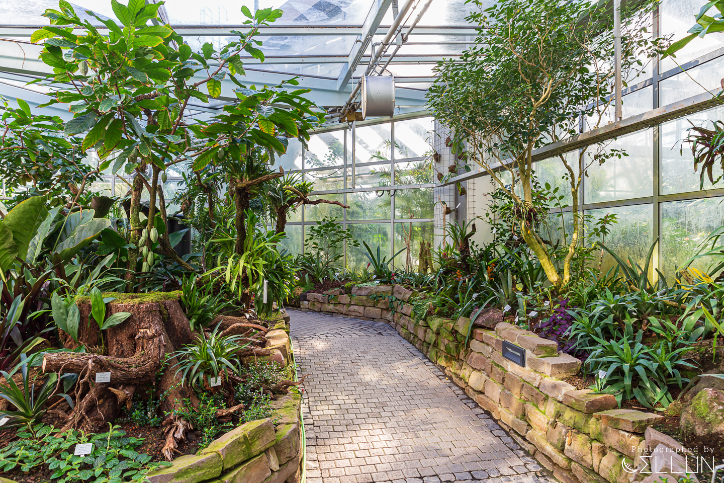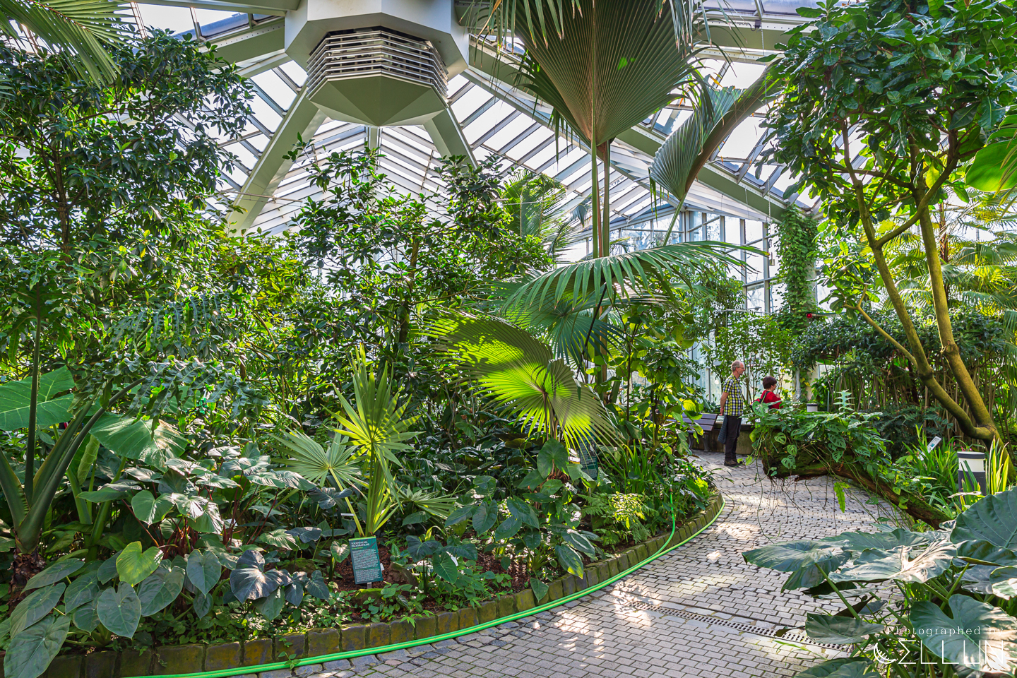 온실은 여느 온실과 비슷하게 열대우림, 아열대 숲, 선인장이 있는 건조지역 등 식생에 따라 구분되어 있습니다.