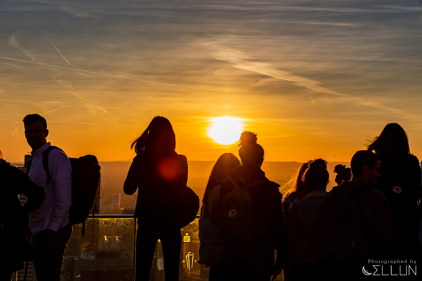 이야기가 좀 샜는데, 마인 타워는 꼭대기를 전망대로 조성해서 전망대 위로 올라가면 프랑크푸르트의 시내가 한 눈에 내려다보이는데요, 특히 마천루가 줄지어 늘어서 있는 모습을 볼 수 있는 절묘한 위치에 자리잡고 있어서 지상에서 보는 것과는 또 다른 멋진 모습을 구경할 수 있습니다.