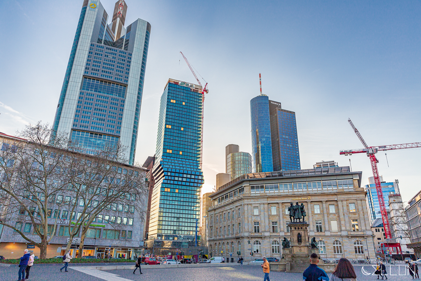 프랑크푸르트의 고층건물은 대부분 상업용, 사무용 건물로 한 구역 안에 뭉쳐있는데다, 주변 건물은 모두 중저층 건물들 뿐이라 실제 높이에 비해 유난히 더 도드라지게 높아보이는데요. 그 덕분에 프랑크푸르트의 스카이라인이 더 멋져보이고 유럽의 대표적인 마천루 도시로 인식되고 있지않나 생각합니다.