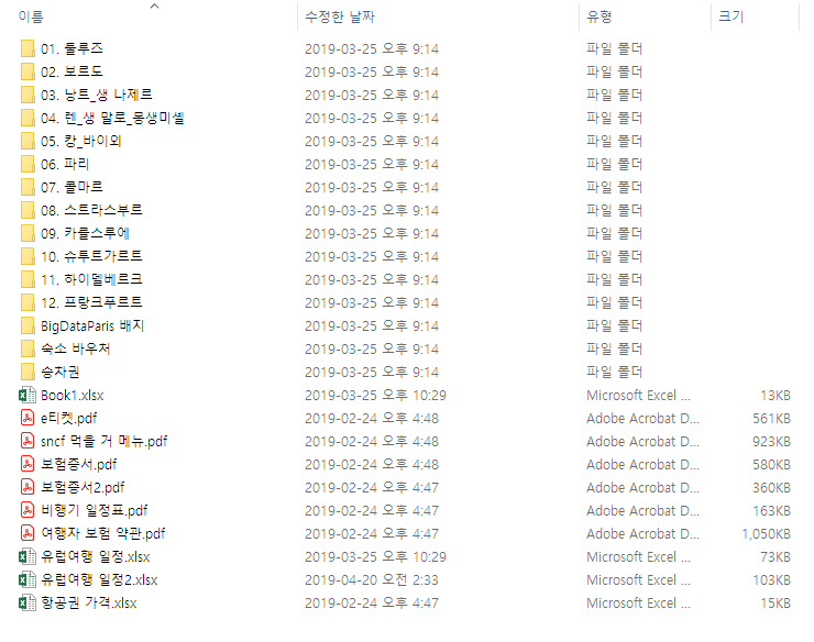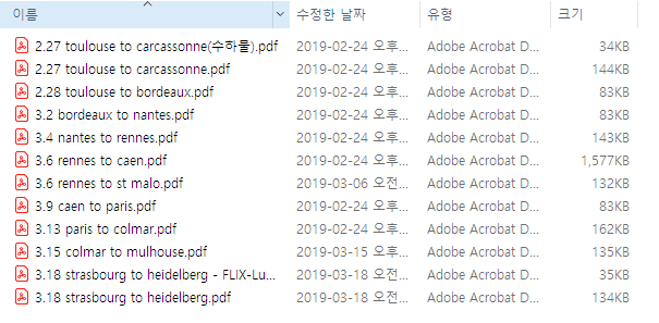 그동안 조사하면서 다운받아 놓았던 관광지 리플렛, 노선도, 버스 시간표 등 PDF파일을 도시별로 폴더를 만들어 정리하고, 미리 예매해 놓았던 승차권 PDF 파일도 날짜별로 정렬하여 별도 폴더로 보관하면 나중에 찾아보거나 승무원에게 보여줄 때 편리합니다.