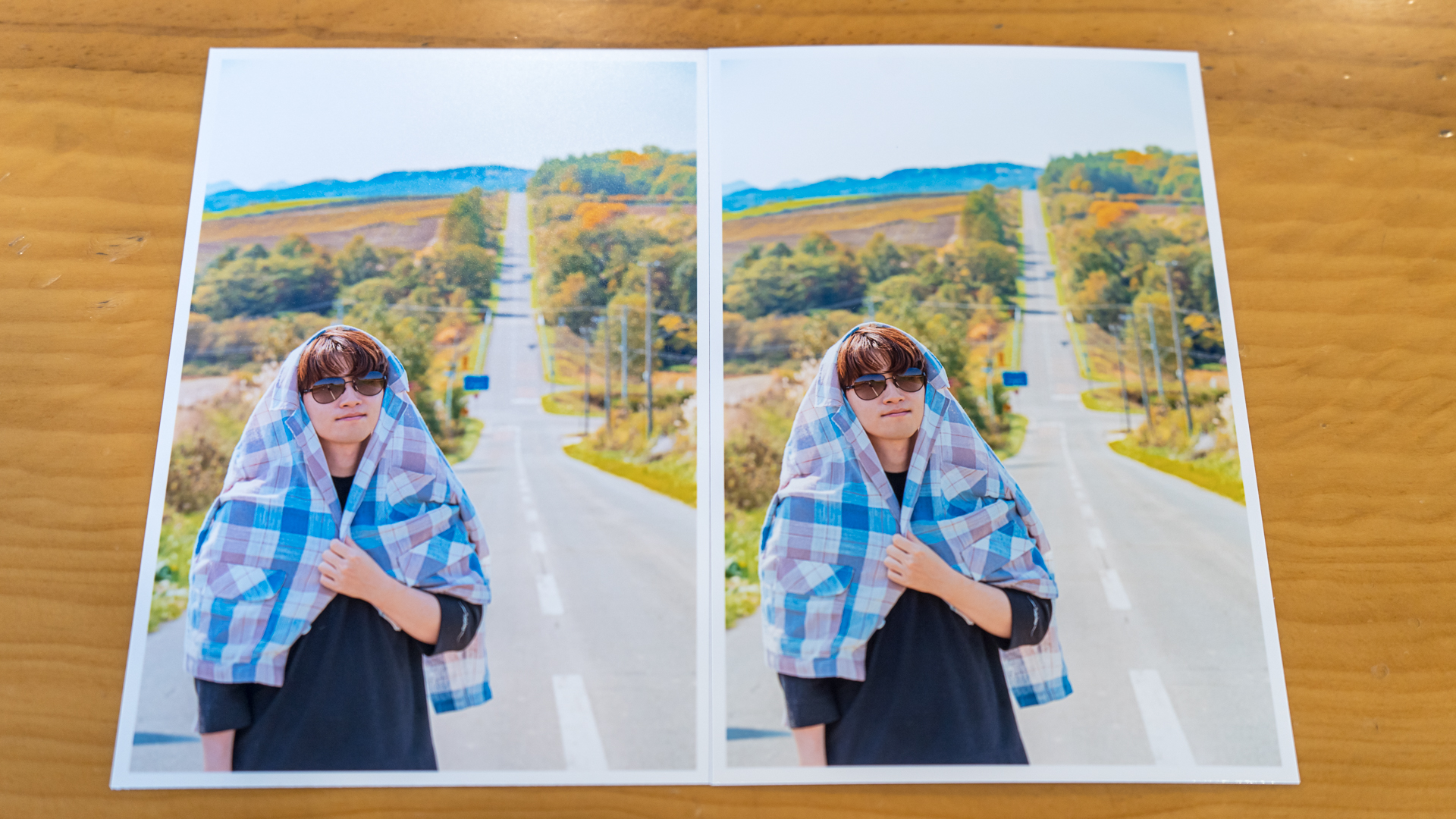 왼쪽의 폴라로이드 비율로 인화한 사진은 사진 자체는 정사각 비율로 되어있고, 폴라로이드 사진 특유의 하단 부분 여백이 넓은 형태로 인화되었습니다. 폴라로이드 비율은 특히 인물사진에 잘 어울리는 모습을 보여주고 있고, 같은 사진이라도 2:3 비율 사진을 그대로 인화할 때 보다 폴라로이드 비율로 인화하면 주변 배경이 크롭되기 때문에 인물에 딱 집중되는 느낌이 더 강해 보입니다. 크기도 4x6 사이즈보다 작고 부담없어서 인물사진에서는 폴라로이드 비율로 하는 것도 꽤 괜찮아 보입니다.