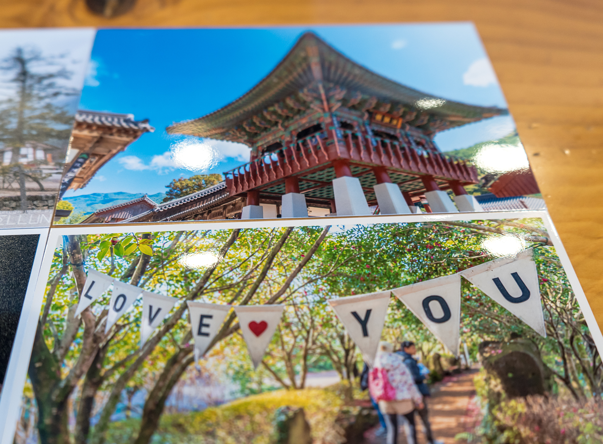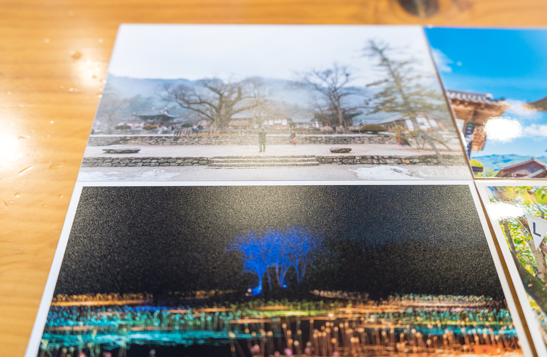 유테 사진은 겉의 테가 사진의 구도를 확실하게 잡아주는 역할을 해서 그냥 사진이라기 보다는 엽서같다는 느낌을 강하게 받았습니다. 특히 왼쪽 아래와 같은 유테의 무광 사진이 특히 그렇습니다. 사진을 촬영한 피사체를 있는 그대로 찍었다는 느낌보다는 잘 편집되고 연출한 분위기가 납니다. 그래서 스냅사진이나, 촬영영역이 크지 않은 사진, 콘트라스트가 강하지 않은 사진의 경우 유테로 인화하면 감성을 더 잘 살려줄 수 있는 것 같습니다.
