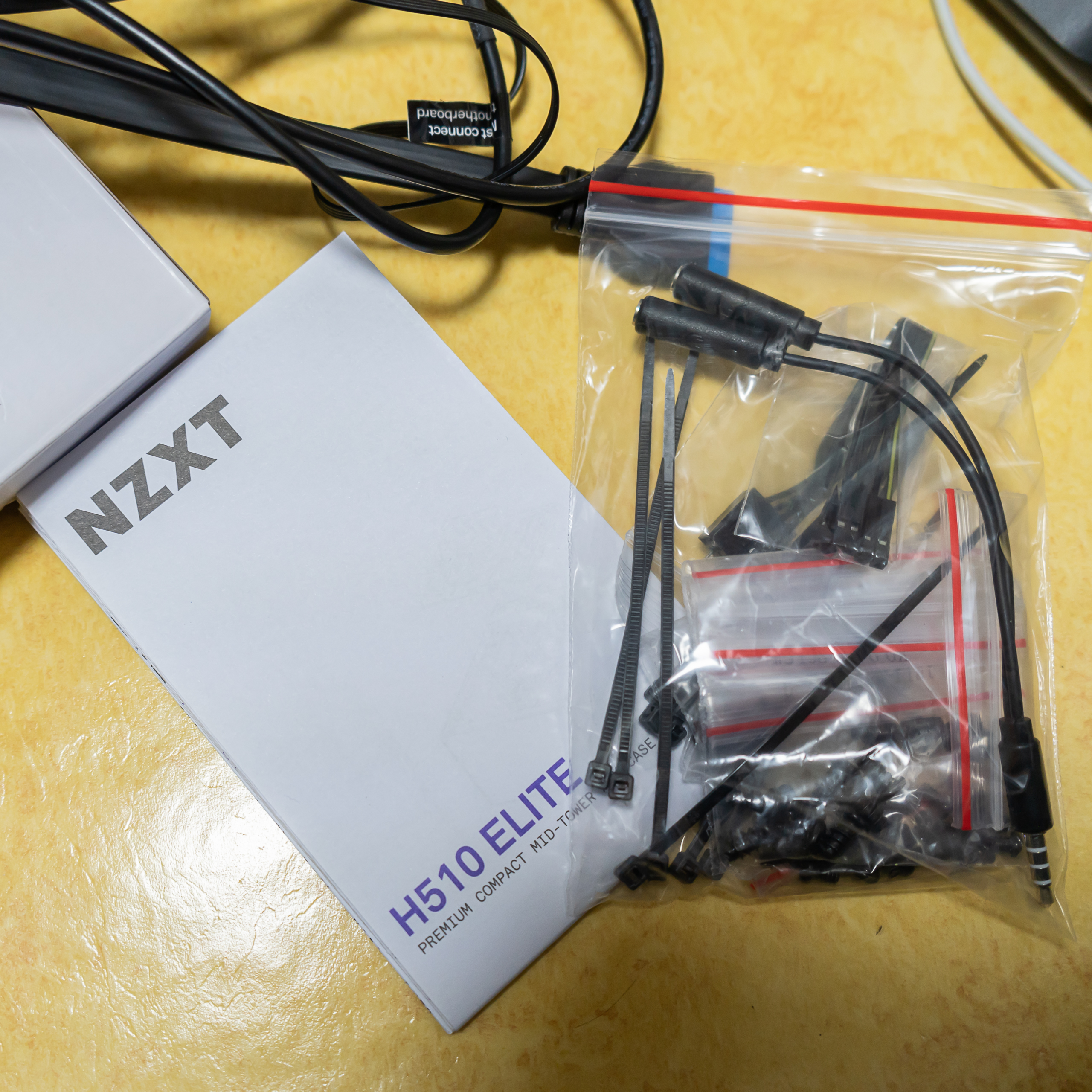 그리고 H510 Elite는 ARGB 기능이 탑재되어 있어서 케이스 불빛 조정하기 위한 컨트롤러와 이를 메인보드에 연결하는 선과 단자가 있는데, 처음 보는 것들이라 처음에 좀 헷갈렸습니다.