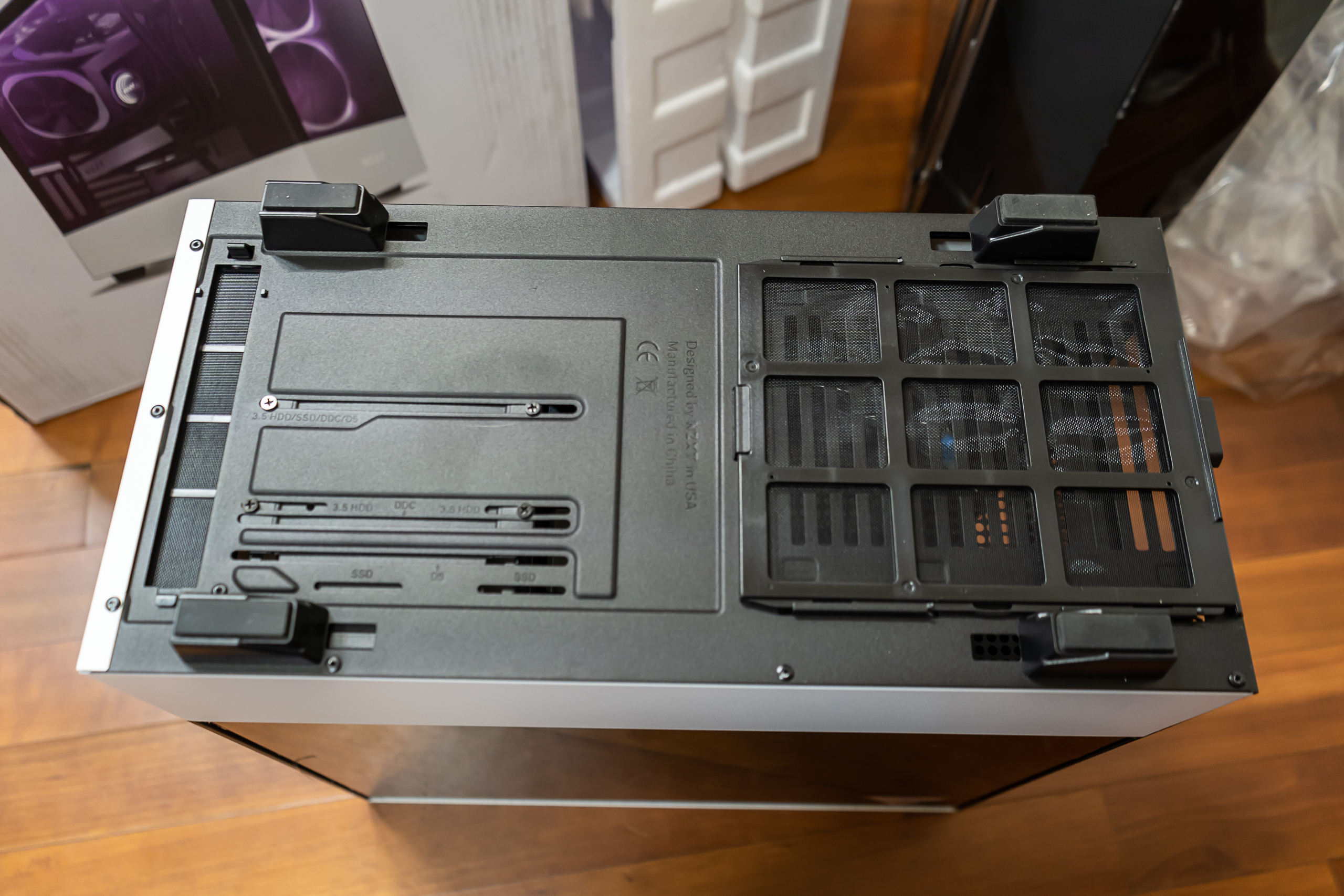 하단에는 파워 팬 먼지유입을 막는 망이 있는데, 요즘 케이스에서 종종 볼 수 있는 자석으로 탈착하는 방식이 아닌 고전적인 걸쇠 스타일로 되어있습니다. 반대방향으로도 어설프게 끼워져서 끼울 때 방향에 주의해야겠네요.