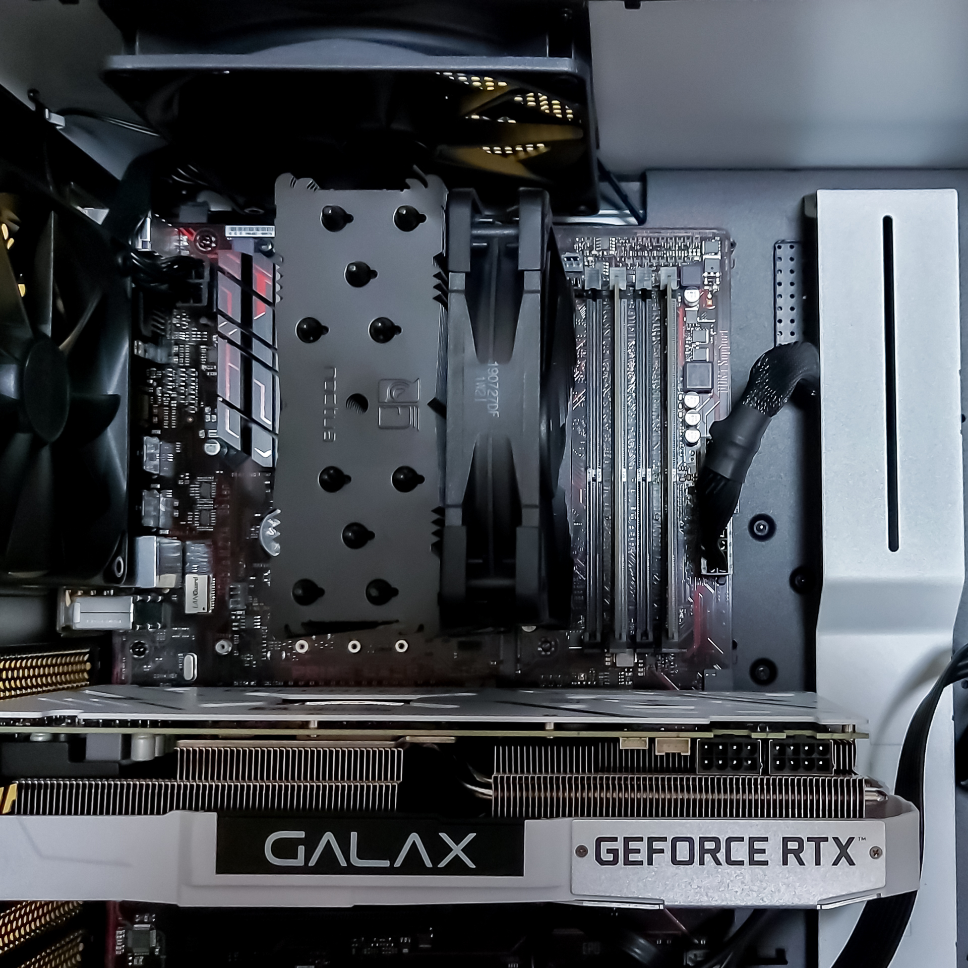 녹투아 크로맥스 블랙 색상 쿨러와 흰색 방열판 커버를 설치하고 나니, 케이스 색상이 조화를 이뤄서 깔끔한 화이트 감성이 있는 PC로 꾸밀 수 있었습니다. 우수한 쿨링 성능으로 유명한 녹투아 제품을 사용하고 싶지만 특유의 갈색 때문에 구매가 주저된다면, 크로맥스 블랙 색상 버전과 방열판 커버 액세러리를 이용하시면 쿨링 성능과 미관 둘 다 만족할 수 있을 듯 합니다.