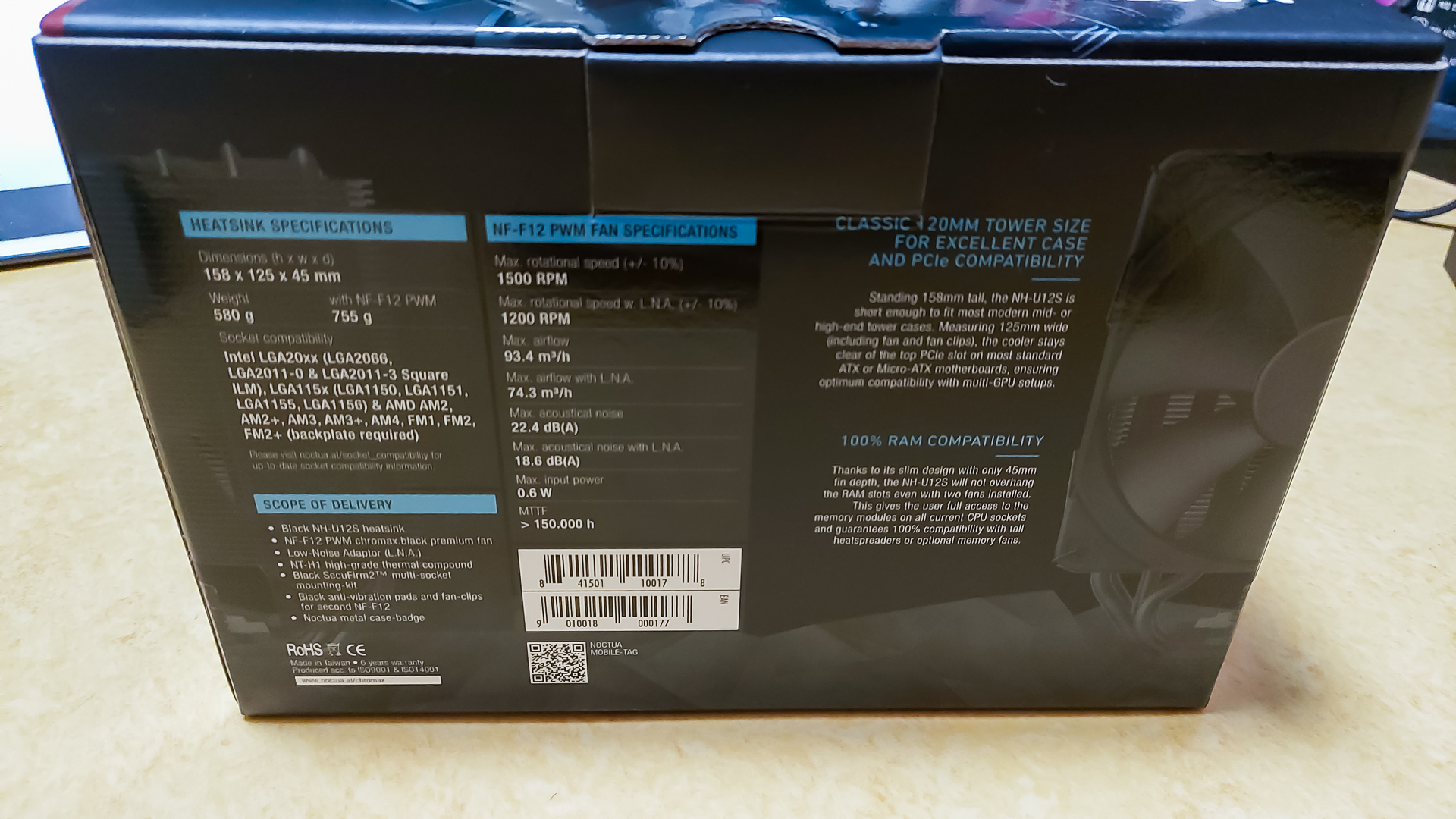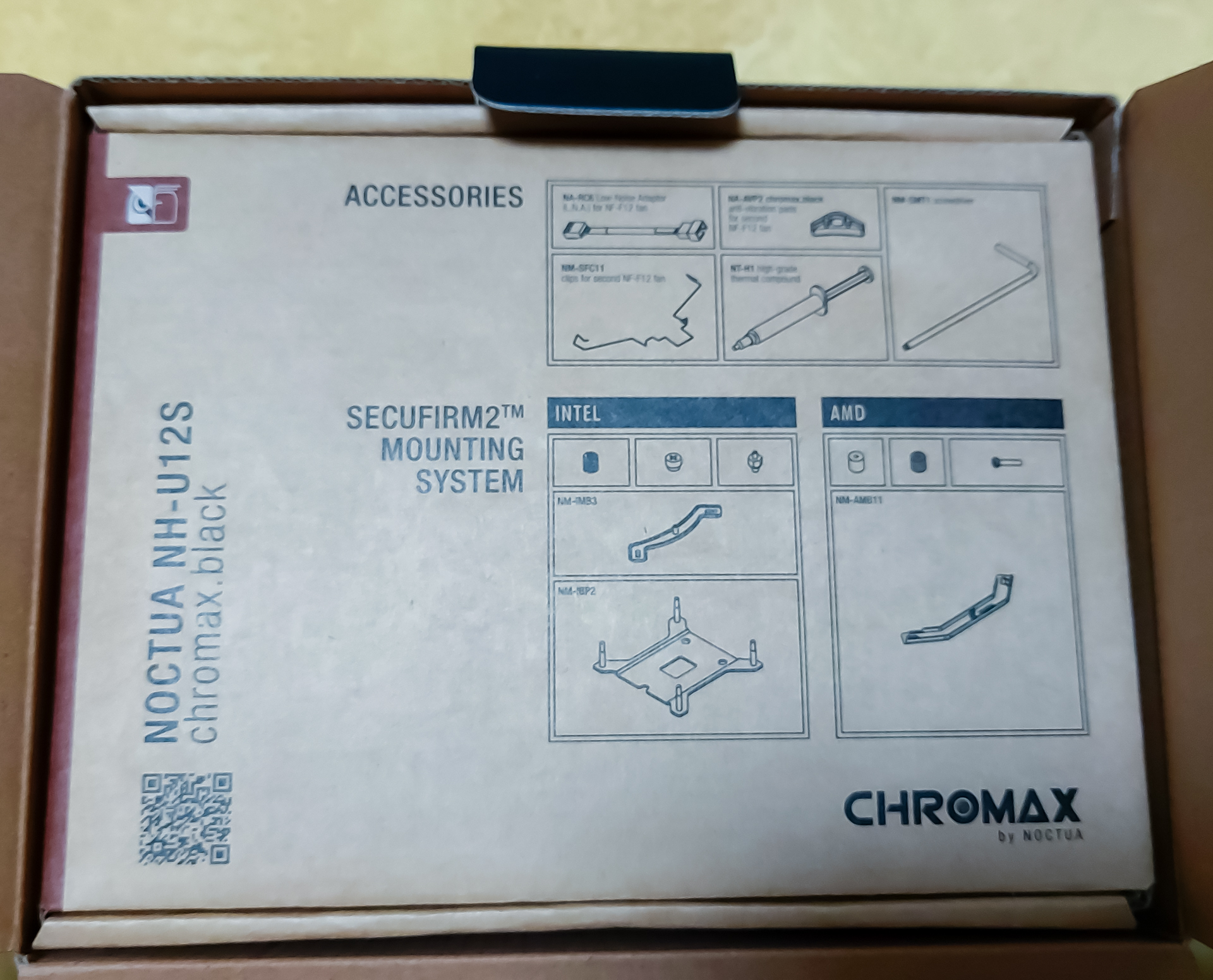 이번에 제가 산 쿨러는 NOCTUA 제품 중 중급 공랭쿨러인 NH-U12S chromax.black 입니다.
