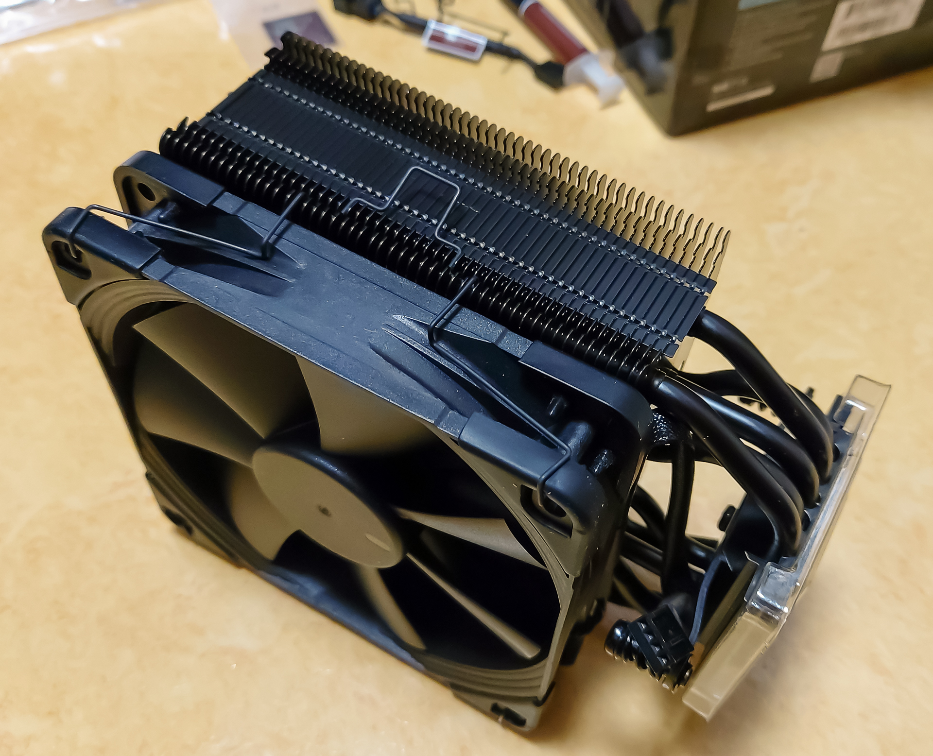 그리고 비싼 녹투아 제품이라 그런지 똑같은 검은색이라도, 방열판이 무광으로 균일하게 도색되어 되어있고, 팬도 싸구려 플라스틱 느낌이 아니라, 왜 사람들이 돈 좀 더 주고 갈색보다 크로맥스 블랙을 선호하는 지 알 것 같습니다.