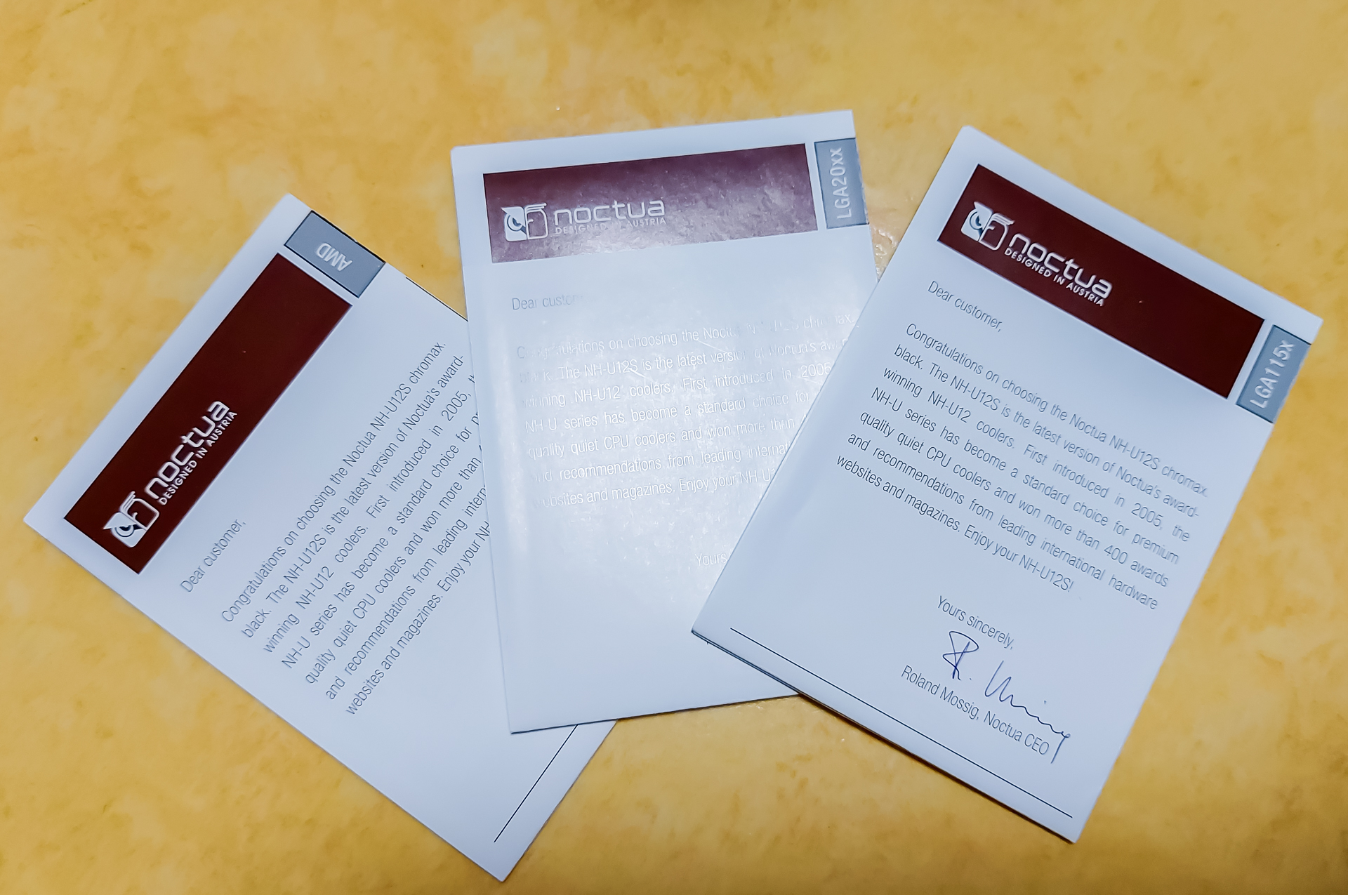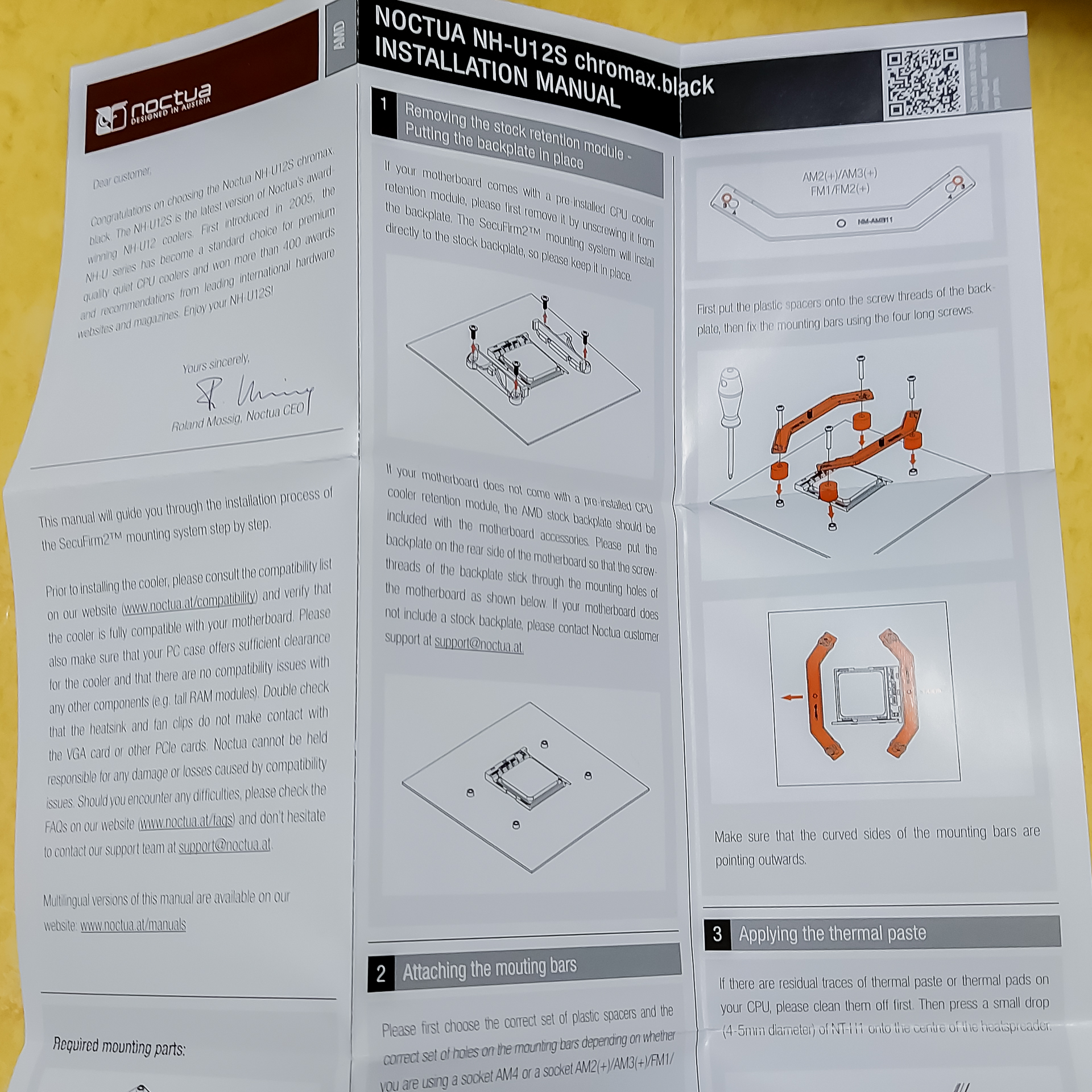 설명서는 세 종류가 있는데요. 메인보드 타입에 따라 장착 방식이 조금씩 다르기 때문에 세 가지로 나눠져 있습니다. AMD CPU용 메인보드는 오른쪽 귀퉁이가 AMD로 된 것을 보면 됩니다.