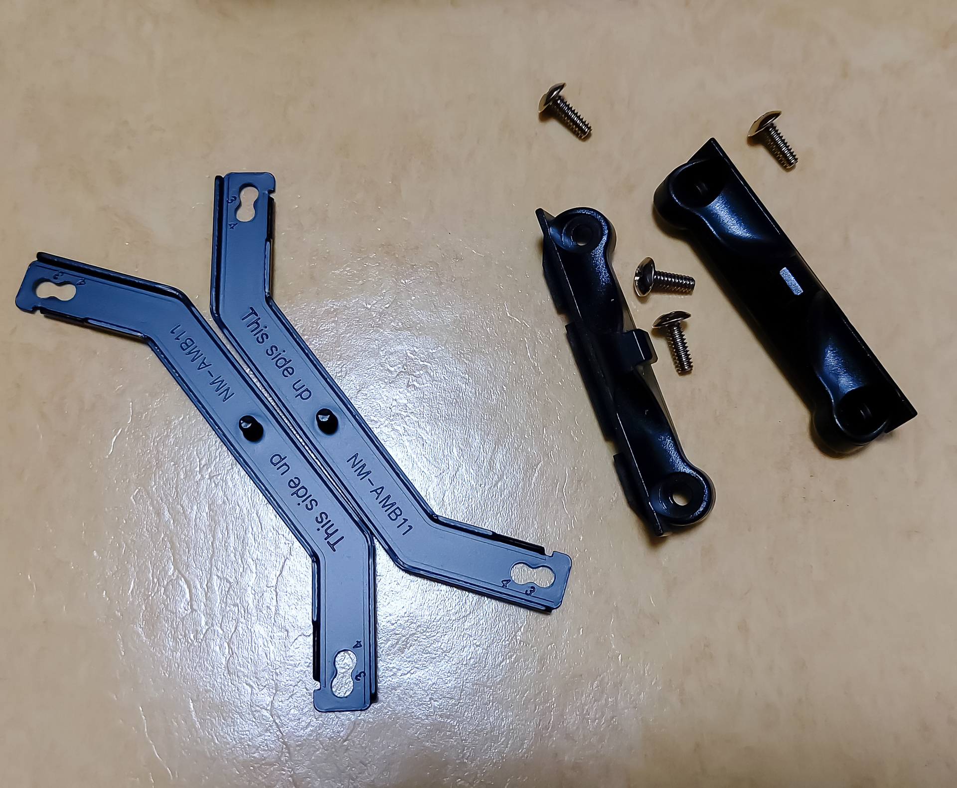 왼쪽 사진에서 왼쪽에 )( 모양으로 된 것이 녹투아 쿨러의 고정용 부품이고, 그 오른쪽에 좀 더 짧은 것이 레이스 프리즘 설치를 위해 달려있던 것입니다. 이 부품은 원래 메인보드에 달려있던 것이니 메인보드 박스에 다시 보관해놓으시면 되겠습니다.