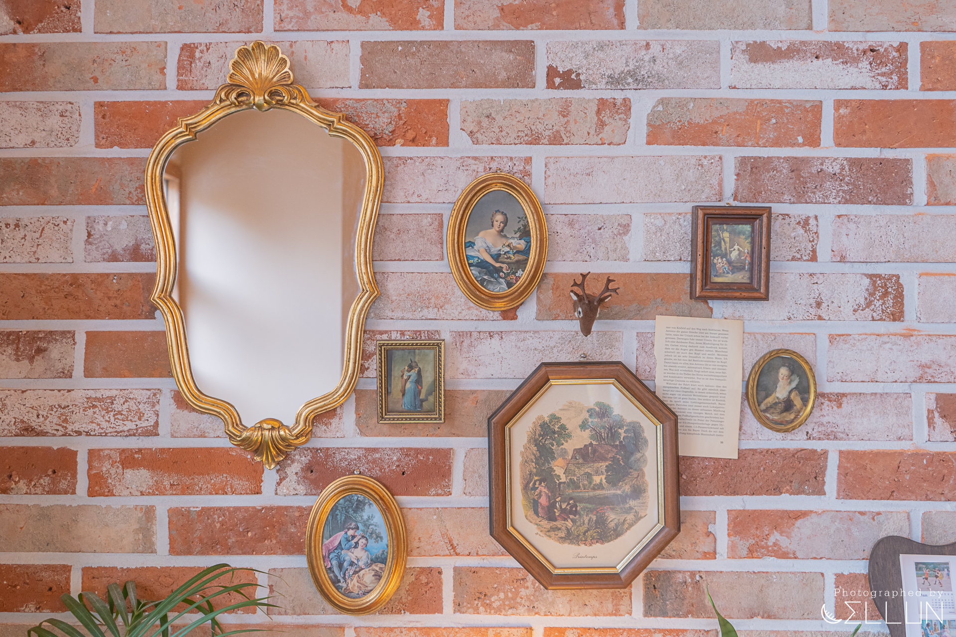 인테리어가 차분한 월넛 색상의 나무와 벽돌로 구성되어 있어서 앤티크한 느낌의 그림액자들과 잘 어울리는데,