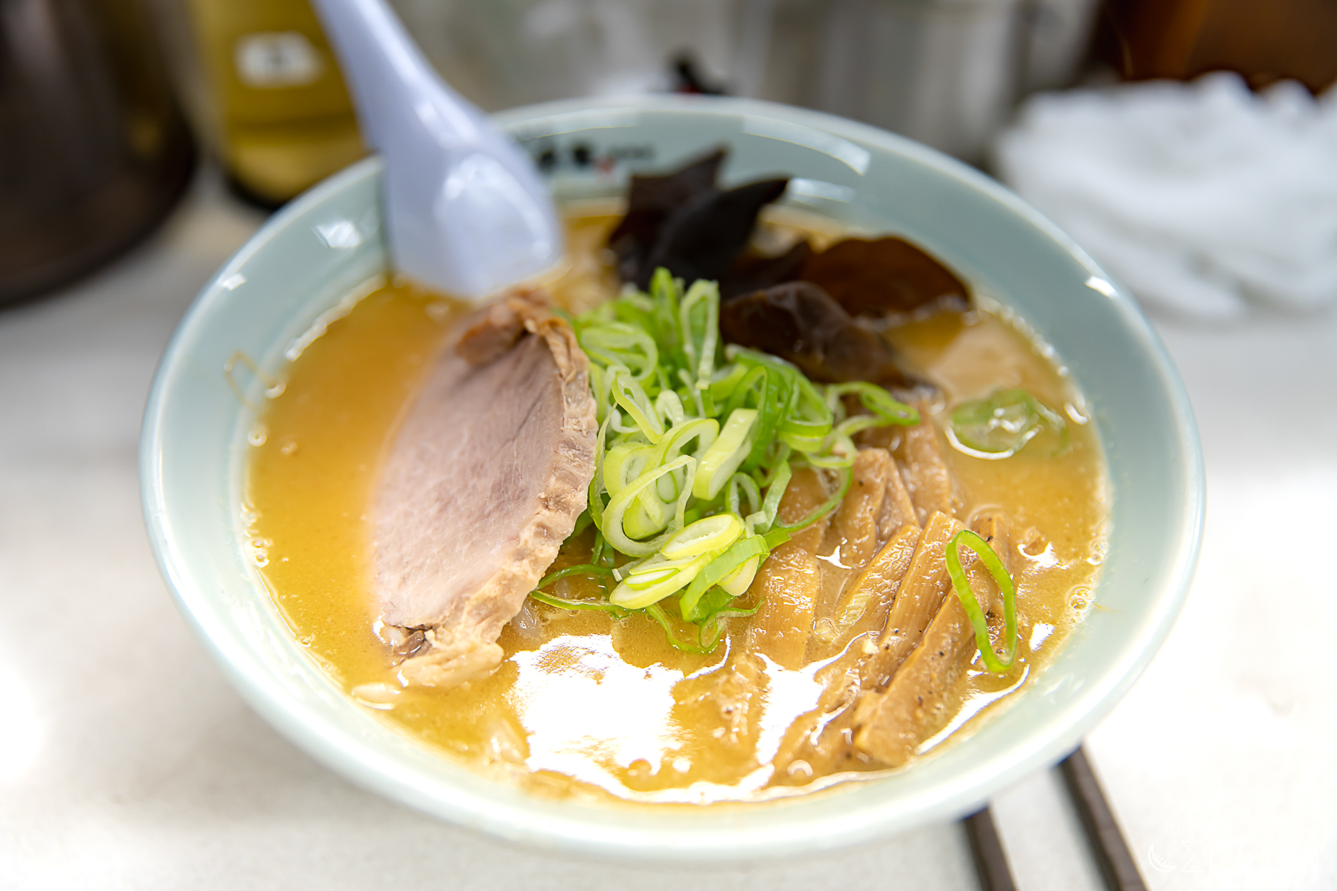 된장이 들어가서 그런지 후쿠오카에서 먹었던 돈코츠 라멘보다 국물 색깔이 좀 더 노르스름하고